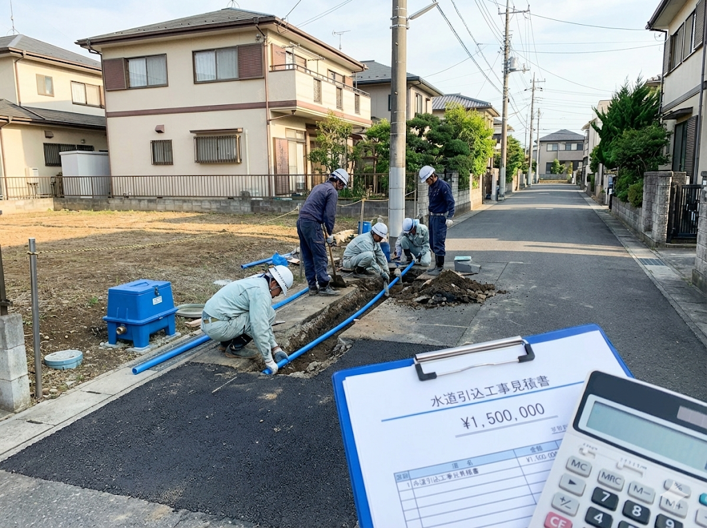 これが最も怖いケースです。前面道路に水道管が通っておらず、数十メートル先の交差点などから水道管を延長してこなければならない場合です。